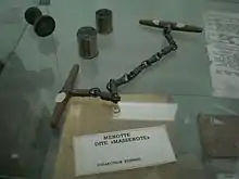 - les menottes métalliques à chaîne : les 2 poignets sont reliés par une chaîne ;
