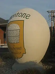 Mentone s'est autoproclamée Egg Basket of the Midwest (panier à œufs du Midwest) du fait de l'importante production d'œufs autour de la ville. Chaque année, début juin, est organisé le festival de l'œuf. Dans le centre-ville un œuf géant en béton a été érigé. Il est considéré localement comme "Le plus gros œuf du monde".