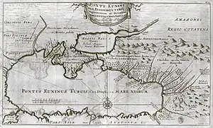 Au XVe siècle, tout navire non-ottoman devait obtenir l'autorisation du sultan de Constantinople pour entrer ou sortir de la mer Noire. Au XVIe siècle, l'accès fut totalement interdit aux navires étrangers[25]. Il fallut le traité de Koutchouk-Kaïnardji en 1774 pour ouvrir les détroits à la navigation internationale[26]. De nos jours, c'est la convention de Montreux de 1936 qui fixe l'accès des navires à la mer Noire par les détroits.