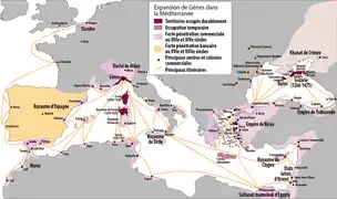 Expansion de Gênes en Méditerranée orientale et mer Noire.