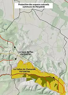 , sur cdn.obs-mip.fr, (consulté le ). - « Liste des zones Natura 2000 de la commune de Mesplède », sur le site de l'Inventaire national du patrimoine naturel (consulté le ).