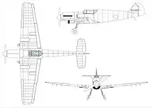 | dérivés : 10 Bf 109 T-0, présérie du Bf 109T (T = Träger), version destinée à servir sur les porte-avions en construction, le Graf Zeppelin et Flugzeugträger B 50 Bf 109 T-1 série du Bf 109T, reconvertie par la suite en T-2, par le retrait des équipements d'aéronavale Bf 109 E-3a, version d'exportation, moteur Daimler-Benz DB 601Aa de 1 050 ch Bf 109 E-5, version de reconnaissance, 2 MG 17 de capot, moteur Daimler-Benz DB 601A de 990 ch | |