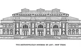 Cependant, grâce à une négociation avec la municipalité de New York, ces locaux ne sont que temporaires. Le Met fait en effet l'acquisition d'un terrain à l'est de Central Park, où il construit un mausolée néogothique en briques rouges, dessiné par les architectes américains Calvert Vaux et Jacob Wrey Mould[10]. Le Met est depuis resté à cet endroit et la structure originale fait toujours partie du bâtiment actuel. Nombre d'extensions seront construites au fil du temps, comme la façade Beaux-Arts, dessinée par Richard Morris Hunt[11]. Cette façade, commencée en 1912 et complétée en 1926, est construite en calcaire gris de l'Indiana. L'aile sud est entreprise en 1911, l'aile nord en 1913 : elles sont l'œuvre du cabinet d'architectes McKim, Mead and White. En 1963, à l'instigation d'André Malraux, le musée expose La Joconde qui reçoit la visite de dizaines de milliers de personnes[12].