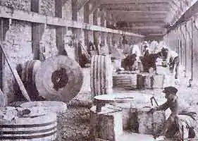 Pour la fabrication de la meule, le client devait préciser le diamètre, la dimension de l’œillard et le sens du rayonnage. Il arrivait qu’un meunier se trompe sur le sens du rayonnage comme en témoignent des extraits de correspondance « Vous nous dites que vos meules de dessus doivent être rayonnées pour tourner à contre-sens. Nous comprenons donc que ces meules doivent être rayonnées pour tourner à contre-sens des aiguilles d’une montre, c’est-à-dire dans le sens opposé à celui auquel le soleil semble tourner autour de la terre ». Malgré toutes les précautions prises à la commande, il arrivait parfois, en cas de litige, qu’on soit obligé de se déplacer pour en modifier le sens « nous avons envoyé un ouvrier à cent lieues d’ici pour dérayonner, redresser et rayonner à nouveau deux paires de meules ; le bénéfice est mangé deux fois[4] ».