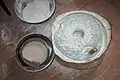 Meule monolithe et sa molette : Mouture par percussion posée avec mouvements désordonnés