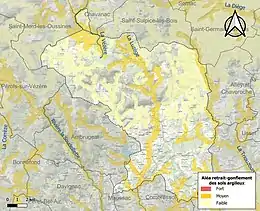 Le retrait-gonflement des sols argileux est susceptible d'engendrer des dommages importants aux bâtiments en cas d’alternance de périodes de sécheresse et de pluie. 19,4 % de la superficie communale est en aléa moyen ou fort (26,8 % au niveau départemental et 48,5 % au niveau national). Sur les 1 406 bâtiments dénombrés sur la commune en 2019, 350 sont en aléa moyen ou fort, soit 25 %, à comparer aux 36 % au niveau départemental et 54 % au niveau national. Une cartographie de l'exposition du territoire national au retrait gonflement des sols argileux est disponible sur le site du BRGM[23],[Carte 2].