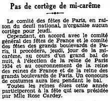 551. Les fêtes de la Mi-Carême, Le Petit Parisien, 28 mars 1930, page 3, 5e colonne.