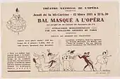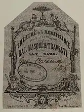 Billet d'entrée pour une dame pour un bal masqué et travesti donné par la troupe du Théâtre de la Renaissance pour la Mi-Carême salle Ventadour à Paris - XIXe siècle.