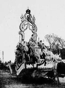 577. Char mentionné dans l'article compte-rendu des défilés de la Mi-Carême 1927 : Mi-Carême ensoleillée, Trois cortèges ont parcouru au milieu d'une grande affluence les divers quartiers de Paris, Le Petit Parisien, 25 mars 1927, 1re page, 3e et 4e colonnes.