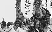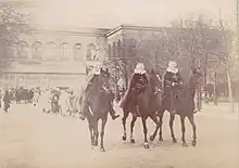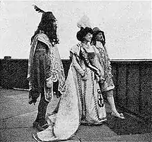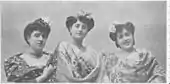 Mi-Carême 1906 à Paris : la Reine de Madrid Concepción Ledesma au centre avec ses demoiselles d'Honneur Louise Mungira et Mathilde Gomez[2].