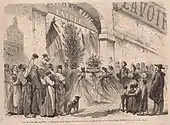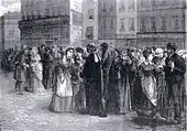 Élection de la reine des blanchisseuses au lavoir de la rue neuve Saint-Médard en 1866[23].