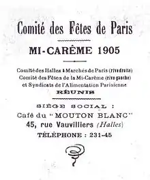 550. La Mi-Carême à Paris, Le Petit Parisien, 8 mars 1929, page 2, 3e colonne.