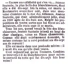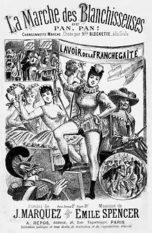 En témoigne le jadis célèbre poème de Charles Monselet Les petites blanchisseuses souvent évoqué par les journalistes dans leurs articles parlant de la Fête des Blanchisseuses. De ce poème grivois ils ne citent jamais que le premier quatrain[41], qui ne laisse pas entrevoir la suite. Ça devient plus chaud dès le deuxième et très chaud et explicite à la fin. On peut le lire en entier sur la base Wikisource.