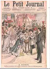 La Gazzetta del Popolo de Milan, rend compte de la visite des Reines italiennes des marchés de Turin et Milan à Paris pour la Mi-Carême 1905[35].