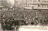 Le mercredi , veille de la Mi-Carême, la foule parisienne devant la gare de Lyon attend l'arrivée des reines italiennes.
