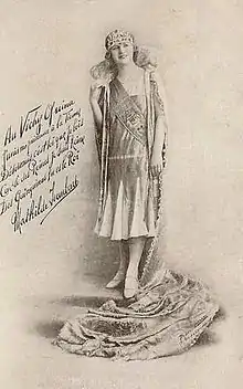 574. La Reine des étudiants de Paris 1921 porte la faluche.