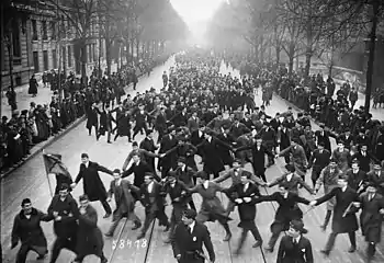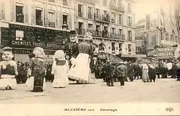 Fête des étudiants de Paris à partir de 1893, fête ayant connu des échanges avec les provinces françaises et l'étranger, la Mi-Carême parisienne est un événement de très grande envergure. Pour s'en convaincre, il suffit de voir sur Internet les actualités cinématographiques de la British Pathé montrant le cortège de 1926[13]. Ou encore la photo des grands boulevards à la Mi-Carême 1927, ou de la place de l'Opéra à la Mi-Carême 1928, à une époque où, pourtant, la fête s'est affaiblie[14]. Le , La Semaine à Paris relève que : « la Mi-Carême, que ne fêtaient guère jadis que les blanchisseuses, est devenue liesse générale[15] ».