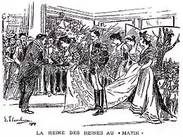 Réception de Mlle Marie Marlin-Poirier, Reine des Reines de Paris 1901, au journal Le Matin, le jeudi de la Mi-Carême 14 mars 1901[33].