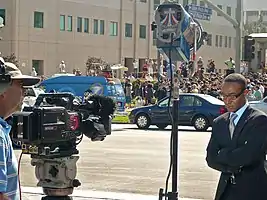 Le , la direction du Staples Center, à Los Angeles, annonce la tenue d'une cérémonie d'hommage, dont les dix-sept mille billets d'accès seront attribués aux demandeurs par tirage au sort. Le lendemain, un million six cent mille personnes auraient participé au tirage au sort effectué par l'huissier Gerard Tillobat, ce qui ferait de Michael Jackson la célébrité défunte dont l'hommage a rassemblé le plus de personnes dans le monde[132]. L'organisation de la cérémonie est confiée à Kenneth Ehrlich (en), le producteur des Grammy Awards. AEG, propriétaire du Staples Center ainsi que des droits sur la tournée avortée de Michael Jackson, a autorisé sa retransmission gratuite en mondovision.