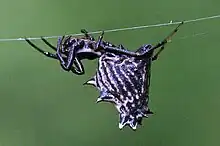 Les mâles sont très différents des femelles, le dimorphisme sexuel est fort. Ils sont généralement deux fois plus petits que les femelles, ils ont moins d'épines, leur abdomen est plus plat et leur teinte plus claire[6]. Même si les mâles produisent de la soie, elle est principalement utilisée dans le rituel d'accouplement.