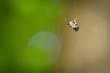 Cette araignée tisse une toile modérément grande et étroitement enroulée dans les broussailles : elle mesure 34 cm de diamètre avec 44 rayons[5].