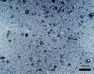 - selon leur taille : de 5 à 1 000 µm (1 mm), typiquement ; et généralement 10 à 150 µm pour les cosmétiques[40] ;