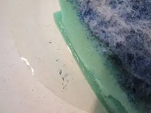 Une partie importante des fibres synthétiques de moins de 1 mm en suspension dans l'eau et trouvées dans l'estomac de nombreux animaux provient de l'usure ou de la fragmentation des fils synthétiques, de textiles synthétiques et aussi de la dégradation de tissus non-tissés. Ils sont notamment introduits dans l'eau via les lessives domestiques ou industrielles[22]. Il s'agit par exemple de fragments de polyester, de polyéthylène, d'acrylique, d'élastane[23],[24]). Le lavage des vêtements et tissus synthétiques[25] et la conduite sur route, qui use les peintures routières sont deux sources de pollution de l'océan mondial qui avaient été sous-estimées. Ces particules invisibles à l'œil nu constituent en 2017 jusqu'à un tiers (15 à 31 %) des 9,5 millions de tonnes déchets marins en plastique et autres polymères rejetées chaque année, selon un rapport qui a porté sur sept régions géographiques marines (publié le par l'UICN[8]).