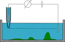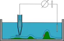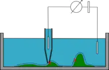 - La SICM se fait dans une solution électrolytique, donc est utilisable en milieu physiologique ce qui rend l'observation de cellules vivantes et de processus biologiques possible en direct[10].