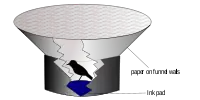 Le comportement de l'oiseau, et plus spécifiquement son orientation mesurée par un tampon encreur au fond de la cage qui dépose de l'encre sous ses pattes, est alors étudié en fonction de ce que celui-ci peut observer[92].