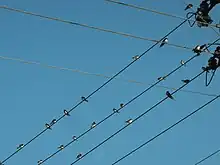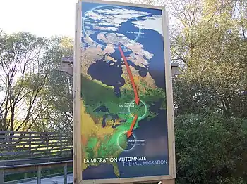 La migration des oiseaux est une migration animale, généralement régulière[3] et périodique (le plus souvent saisonnière)[4] de nombreuses espèces d'oiseaux qui mettent à profit leurs grandes capacités de déplacement, pour voyager entre une aire d'hivernage, et une aire de reproduction et de nidification, à la recherche de conditions meilleures pour leur survie. Selon les estimations, environ 50 milliards d'oiseaux représentant 19 % des 10 000 espèces d'oiseaux du monde, migrent annuellement à longue distance, cette proportion atteignant 50 % chez les oiseaux qui se reproduisent à des latitudes nord et sud supérieures à 35°[5].