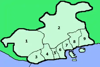 Les arrondissements de la ville de Kobé, Mikage est situé dans l'arrondissement noté 9