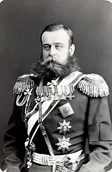 Mikhaïl Dmitrievitch Skobelev, ou Skobeliev, également appelé Michel Skobeleff[1] (en russe : Михаи́л Дми́триевич Ско́белев), né le à Saint-Pétersbourg et décédé le à Moscou, est un général russe connu pour la conquête de l'Asie centrale et ses actions durant la Guerre russo-turque de 1877-1878. Il était surnommé le « général blanc », car il allait au combat sur un cheval blanc et était lui-même souvent habillé de blanc.