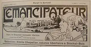 - Émile Chapelier, Une colonie communiste. Comment nous vivons et pourquoi nous luttons, préf. Emmanuel Tesch[52], Bibliothèque de la Colonie communiste libertaire L’Expérience, no 1, Imprimerie Fraigneux, Bruxelles, 1906[53].