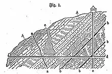 Schéma d'une exploitation minière en montagne, extrait du Meyers, 1890.