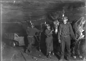 Les enfants étaient fréquemment employés pour descendre dans les mines de charbon. Photographie de 1908.