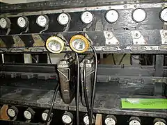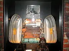 • Ultérieurement les lampes ont été équipées d'abord d'un verre puis d'une cuirasse en tôle. L'essence minérale s'étant substituée à l'huile, on adapta aux lampes un système de rallumage interne.