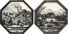 Mines et forges de Baigorry,original de 1787 refrappé en 1970. Description revers : Scène représentant l'extraction du minerai et son traitement dans les hauts fourneaux ; à droite, laveries.