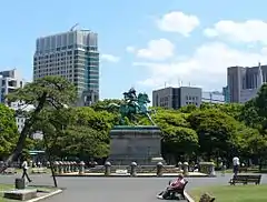 Le monument de Kusunoki Masashige (楠木正成像, Kusunoki Masashigue-zō) sur la place devant le palais impérial de Tokyo est érigé en 1900 avec le cuivre de la mine de Besshi.