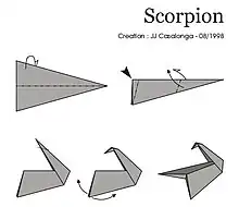 Un origami composé est un modèle qui sera constitué de la réunion de formes pliées indépendamment, par exemple la tête et le corps d'un animal[5].