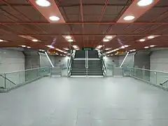 Œuvre réalisée par Olivier Mosset et Damien Aspe[3]. L'œuvre consiste à superposer un pastel rouge et bleu au niveau de la mezzanine de la station.