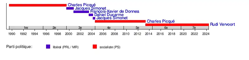 | Charles Picqué | PS | – (8 ans, 9 mois et 24 jours) |