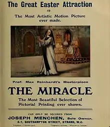 Affiche pour The Miracle (1912) - (en) The Miracle (all. Das Mirakel, fr. Le Miracle), un film britannique colorisé, réalisé par Michel Carré et (en) Joseph Menchen, sorti en 1912