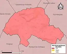 Le retrait-gonflement des sols argileux est susceptible d'engendrer des dommages importants aux bâtiments en cas d’alternance de périodes de sécheresse et de pluie. La totalité de la commune est en aléa moyen ou fort (94,5 % au niveau départemental et 48,5 % au niveau national). Sur les 123 bâtiments dénombrés sur la commune en 2019, 123 sont en aléa moyen ou fort, soit 100 %, à comparer aux 93 % au niveau départemental et 54 % au niveau national. Une cartographie de l'exposition du territoire national au retrait gonflement des sols argileux est disponible sur le site du BRGM[20],[Carte 3].
