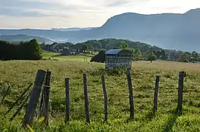 L'occupation des sols de la commune, telle qu'elle ressort de la base de données européenne d’occupation biophysique des sols Corine Land Cover (CLC), est marquée par l'importance des territoires agricoles (63,5 % en 2018), une proportion identique à celle de 1990 (63,9 %). La répartition détaillée en 2018 est la suivante : prairies (54,7 %), forêts (35 %), zones agricoles hétérogènes (8,8 %), zones urbanisées (1,5 %)[19]. L'évolution de l’occupation des sols de la commune et de ses infrastructures peut être observée sur les différentes représentations cartographiques du territoire : la carte de Cassini (XVIIIe siècle), la carte d'état-major (1820-1866) et les cartes ou photos aériennes de l'IGN pour la période actuelle (1950 à aujourd'hui)[Carte 1].