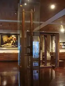 Salle des Martyrs aux Missions étrangères de Paris. Ce qui ressemble à une échelle au milieu est la cangue qu'a portée Pierre Dumoulin-Borie en captivité.