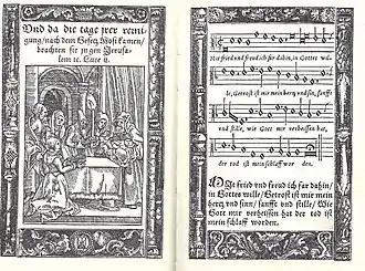 Des compositeurs ont écrit des arrangements vocaux, certains destinés aux funérailles. Johann Walter (1524), Lupus Hellinck, publié en 1544, Bartholomäus Gesius (1601), Michael Praetorius, Johann Hermann Schein, Samuel Scheidt et d'autres compositeurs ont composé des arrangements à quatre voix[7]. Heinrich Schütz l'a utilisé dans le mouvement 21 de son Musikalische Exequien , composé pour les funérailles de Henri II, comte de Reuss-Gera. Buxtehude a écrit quatre versions différentes pour les quatre strophes dans un contrepoint complexe comme musique funèbre pour Menno Hanneken, Mit Fried und Freud , qu'il a ensuite développé par un Klag-Lied (Lamentation) dans une musique funèbre pour son père.