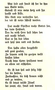 - "Mit Fried' und Freud' ich fahr' dahin". hymnary.org