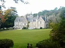 Le manoir de Kertalg dominant la vallée du fleuve côtier Bélon (en amont du pont du Guily).