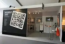 Le QRCode qui doit son essor aux smartphones est présent dans le mobile art, réalisable dans pratiquement n'importe quel matériau, il peut être l'œuvre en elle-même ou son unique élément matérialisé, évoquant un message crypté, il se lit comme une histoire à tiroirs[9].