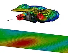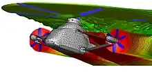 Un problème majeur des engins testés ou préfigurés pour la mobilité aérienne urbaine est qu'ils sont très bruyants, notamment pour les personnes situées en dessous d'eux (ci-contre : La simulation du rayonnement sonore du RACER montre (bruit du moteur non compris) en vert le rayonnement sonore généré par le cisaillement de l'air par les pâles (horizontales) du rotor, et, en rouge, celui généré par les hélices (verticales) de l'engin. Les interactions entre ces deux sources et leur "sillages", créent un rayonnement sonore intense et complexe.
